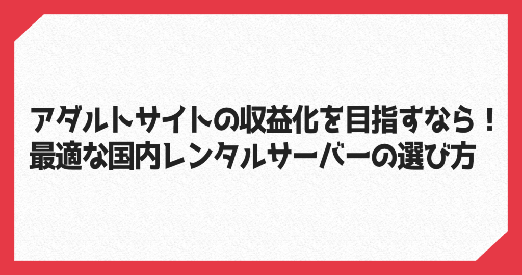 アダルトサイトの収益化に焦点を当て、高速性、大容量、規約の明確さという条件を満たした国内レンタルサーバーを厳選してご紹介します。